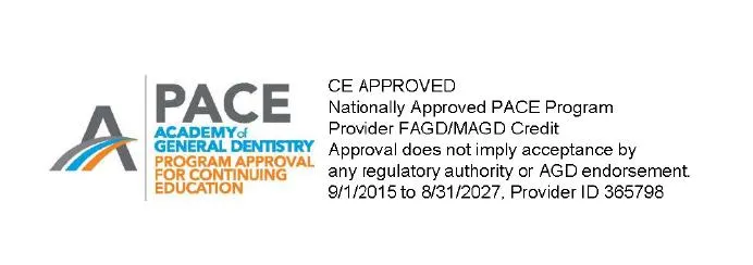 This activity has been planned and implemented in accordance with the standards of the Academy of General Dentistry Program Approval for Continuing Education (PACE) through the Joint Program Provider approval of CE Approved and Lovebites Dental. CE Approved is approved for awarding FAGD/MAGD credit.